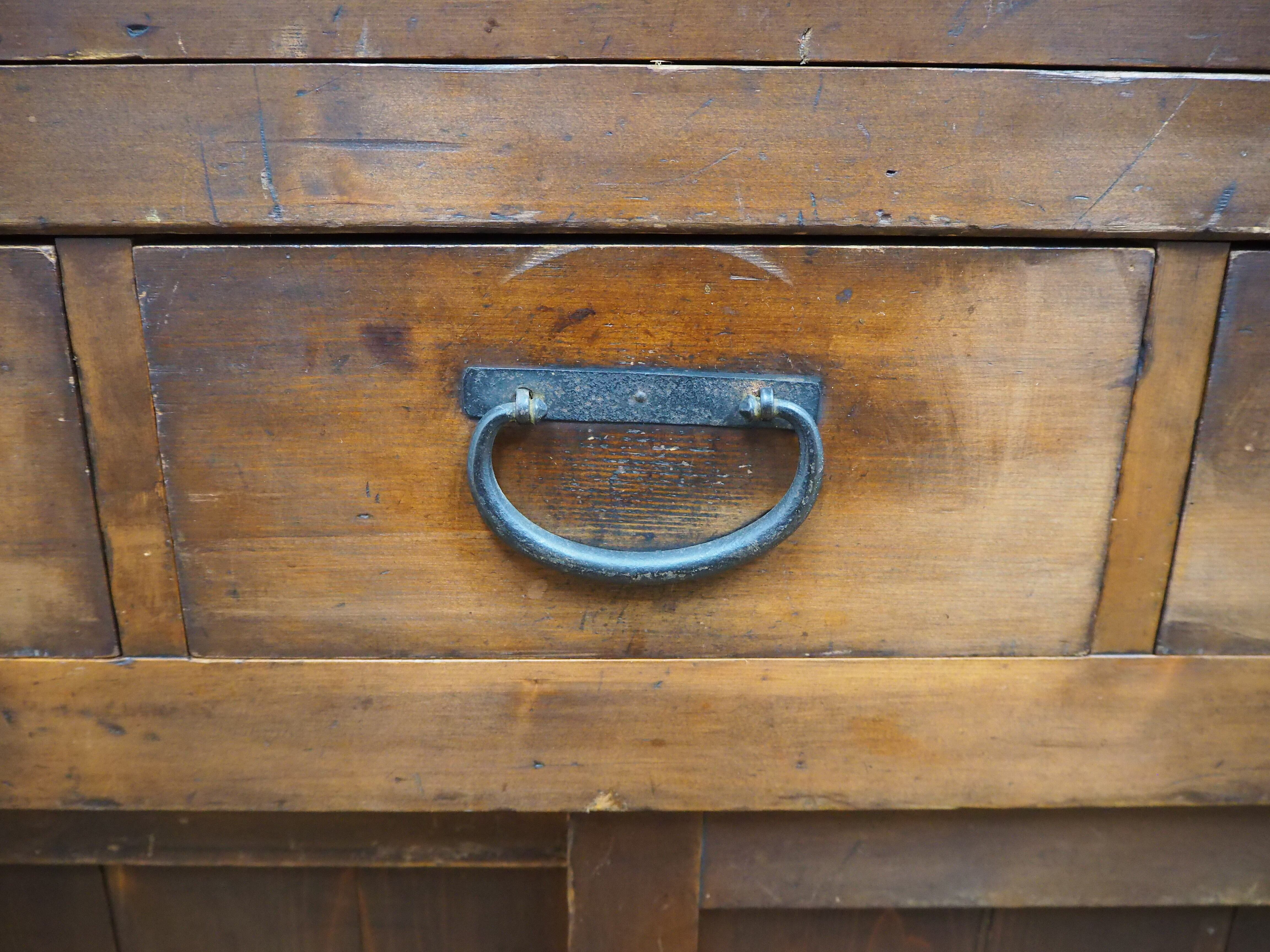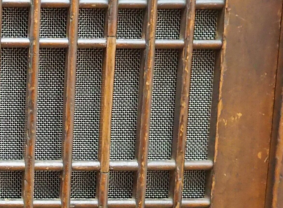 高さ147cmの存在感のある大きな水屋箪笥です。格子部分は欠けていた桟を継ぎ足し、新しいステンレスメッシュに張り替えるなど衛生面に配慮しました。小物を収納する引き出しも多く、使い勝手も良さそう。使うたびに木のぬくもりに触れ、キッチンにいる時間が楽しくなりそうです。