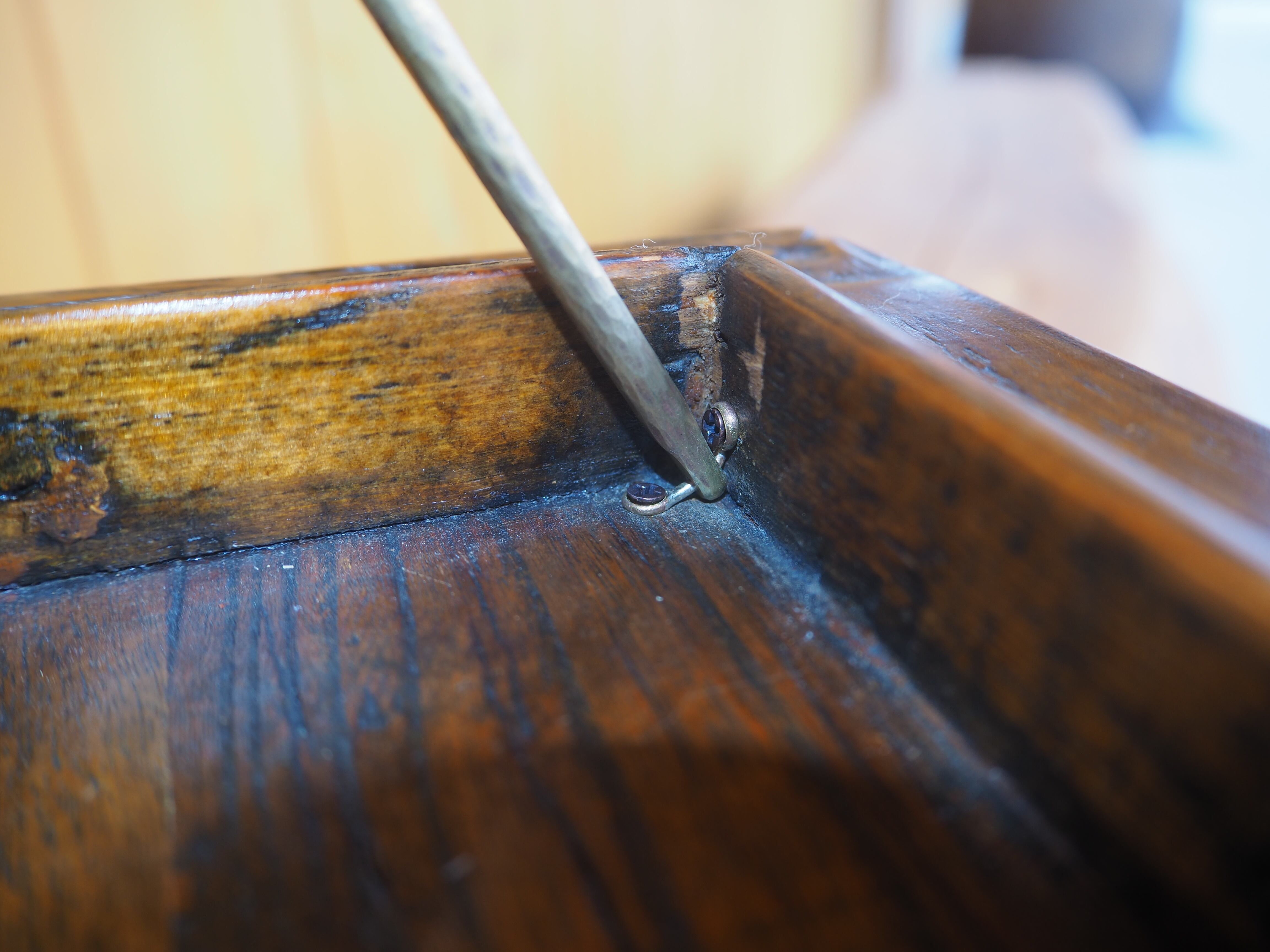 すべての部分が厚みのある材で作られており、見た目以上に重厚感のあるコレクションボックスです。木目は触れると凹凸が感じられるほどで、木の温もりがダイレクトに伝わってきます。このボックスであれば、アイテムの魅力を十分に受け止め、さらに引き立たせてくれることでしょう。引き出しの奥行きは21㎝あります。手作りにて真鍮のストッパーを作製してあります。
